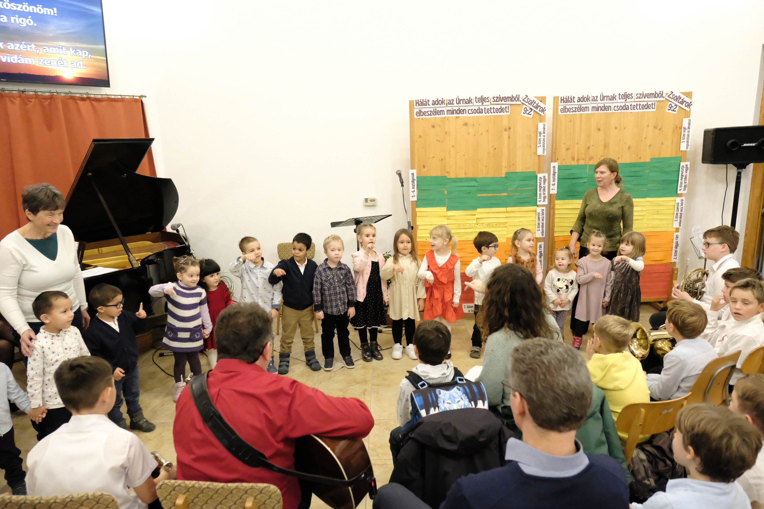 Ovisok, iskolások és felnőttek – egy héten keresztül építgettük téglánként a hála falait, számba véve Istennek sokféle áldását, amikkel naponta elhalmoz minket. E hét csúcspontja a Hálaadó est volt, amikor a szülők és zeneiskolások is becsatlakoztak a közös hálaadásba. (Még több képért látogassatok el az iskola FB oldalára.)